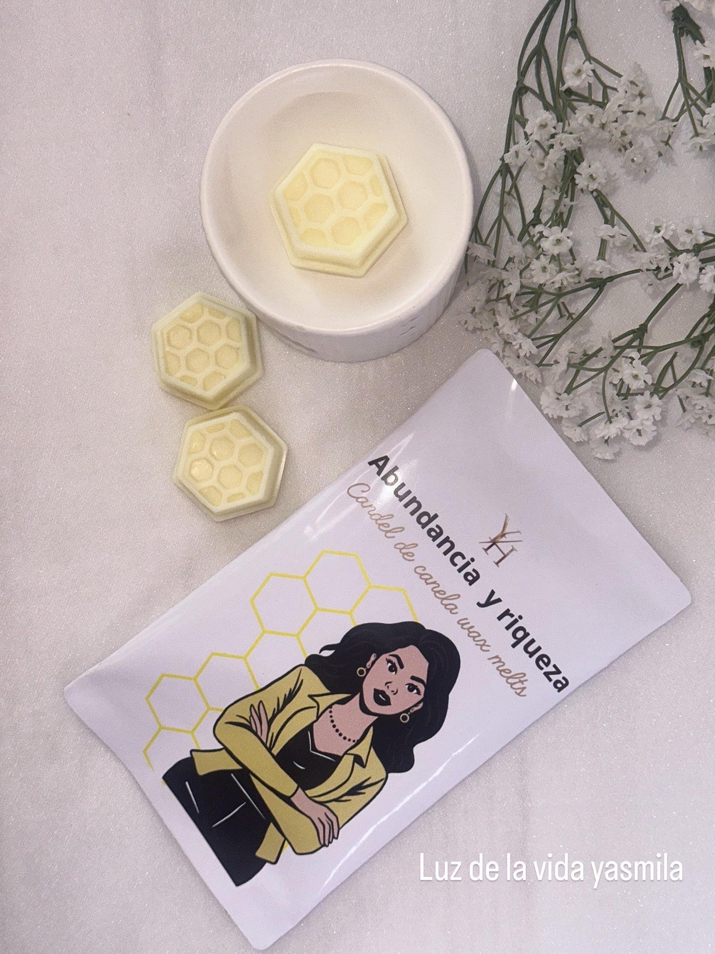 💫¿Sientes que necesitas un extra de buena fortuna y energía positiva? Nuestros wax melts "Abundancia y Riqueza" 💰son más que un simple aroma; son una experiencia sensorial diseñada para manifestar tus deseos. Cada pequeña pieza está infundida con la calidez y el dulzor de la canela, una especia ancestralmente ligada a la atracción de la prosperidad⭐️, el éxito y la felicidad.